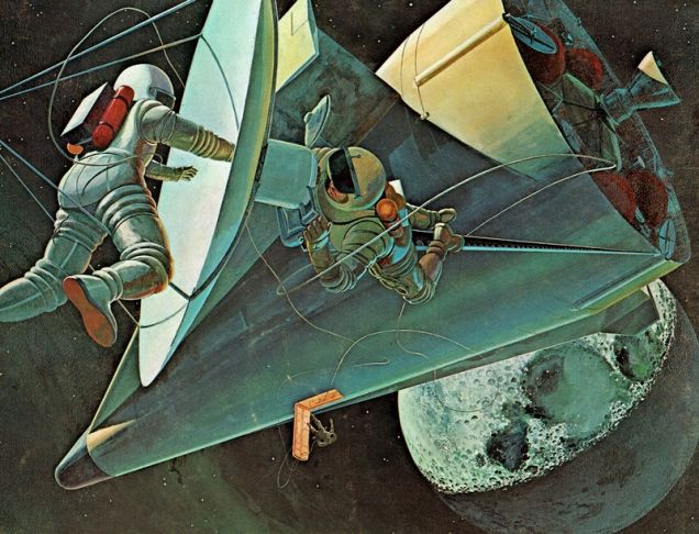I hate giving you, dear readers, a homework assignment. But I’m stumped on this one. Any ideas about who drew this gorgeous retro-space picture are appreciated in the comments.